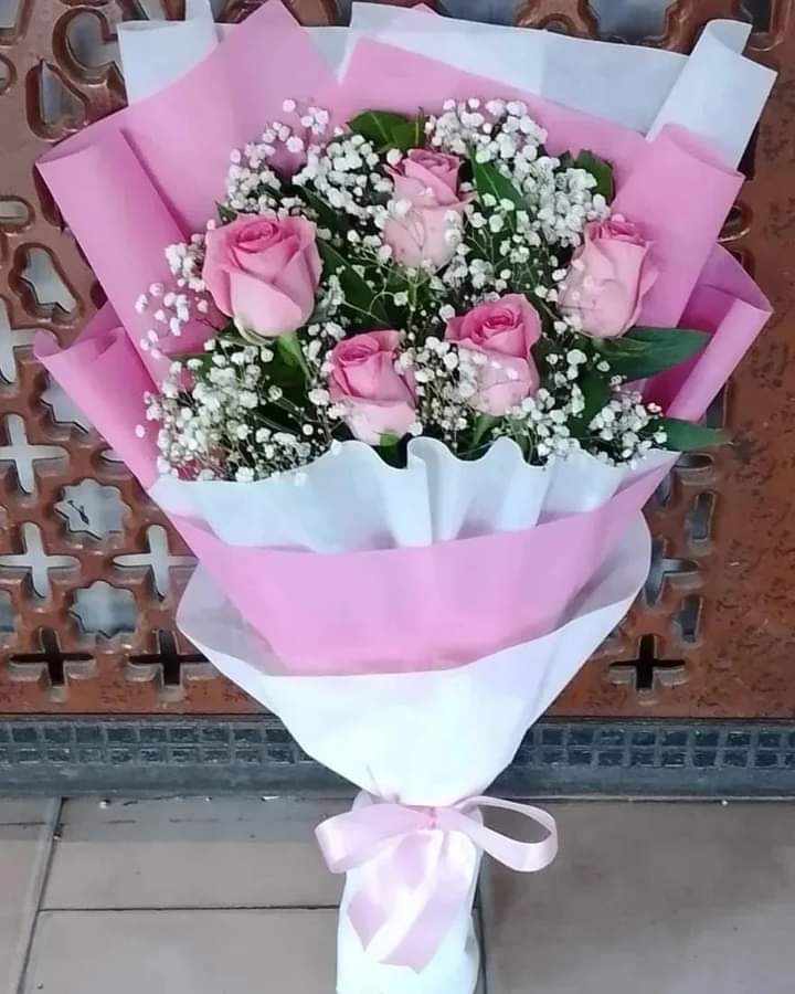A charming bouquet of imported pink roses paired with delicate baby’s breath, wrapped in soft pink and white for a sweet, elegant touch. Ideal for birthdays, anniversaries, or showing gentle affection.